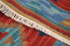 Tappeto Kilim Turkestan orientale realizzato a mano, al telaio. Il kilim ormai sempre più richiesto dal mercato per via della loro facile gestione, quindi cresce la produzione e la vasta scelta di design e colori. Come il 4048 che è un design molto moderno con colori vivaci come il blu e il rosso. Perfetto per arredare un ambiente di casa e dargli quel tocco in più di colore. Questi kilim sono lavabili in lavatrice, senza centrifuga per non rovinare le frange; serebbe più opportuno lavarli a mano con acqua abbondante, lasciandoli asciugare piatti.