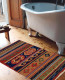 Il tappeto Kilim Turkestan FC04 ha colori vivaci e accesi con motivi geometrici realizzati a mano. L'ideale rendere accogliente anche il bagno e dare un tocco di vivacità.